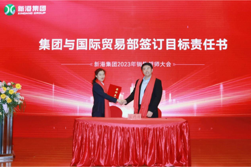 集團(tuán)總裁魏子銘在致辭中表示,過去的一年,在多方面不利因素的影響下,新港人團(tuán)結(jié)一致、迎難而上,依然取得了良好的經(jīng)營業(yè)績。2023年,我們將進(jìn)一步展開多方面的改革調(diào)整,為集團(tuán)的穩(wěn)步發(fā)展不懈努力。為此,我們特舉行此次新港集團(tuán)2023年銷售誓師大會,通過與各銷售團(tuán)隊(duì)簽訂目標(biāo)責(zé)任書的方式,切實(shí)身體力行使命般的承諾,從心出發(fā),奮進(jìn)前行,力爭在2023年的新征程中實(shí)現(xiàn)銷售布局和業(yè)績跨越式提升,為百年新港貢獻(xiàn)力量,向著宏偉的目標(biāo)同心協(xié)力,攜手向前。