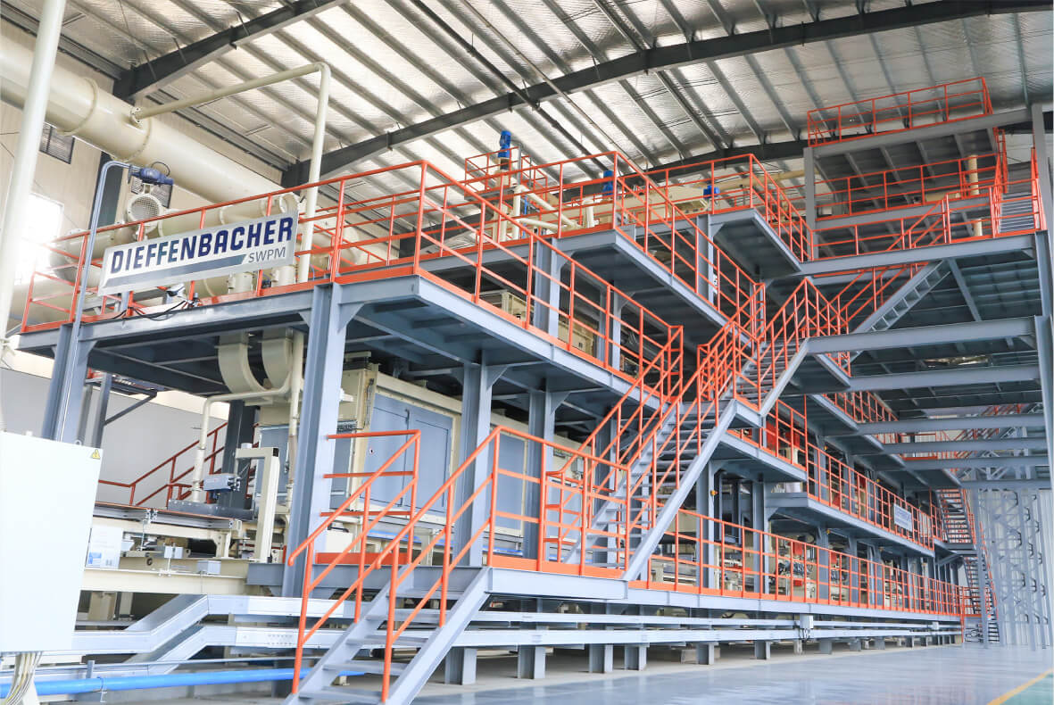新港超強刨花板項目引進山東省首條迪芬巴赫生產線,采用格魯巴斯超級刨片機,意大利帕爾超級刨花篩、氣流風選機,迪芬巴赫在線施膠、拌膠系統,迪芬巴赫表層氣流鋪裝機,迪芬巴赫連續壓機系統,同步國際水平,引領行業發展。